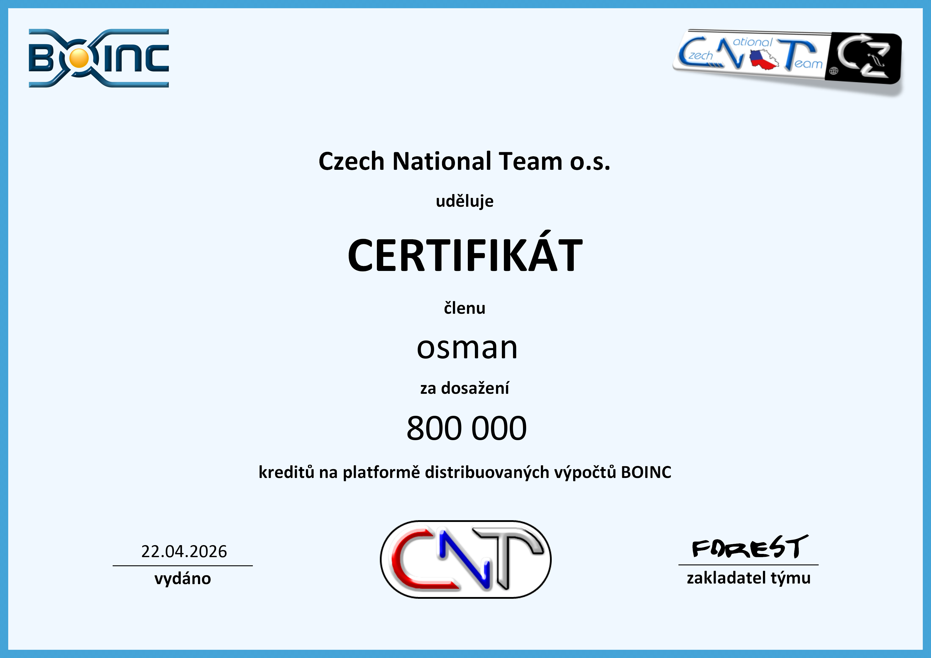 CNT BOINC ACTIVE CUP : 3551 bodů.