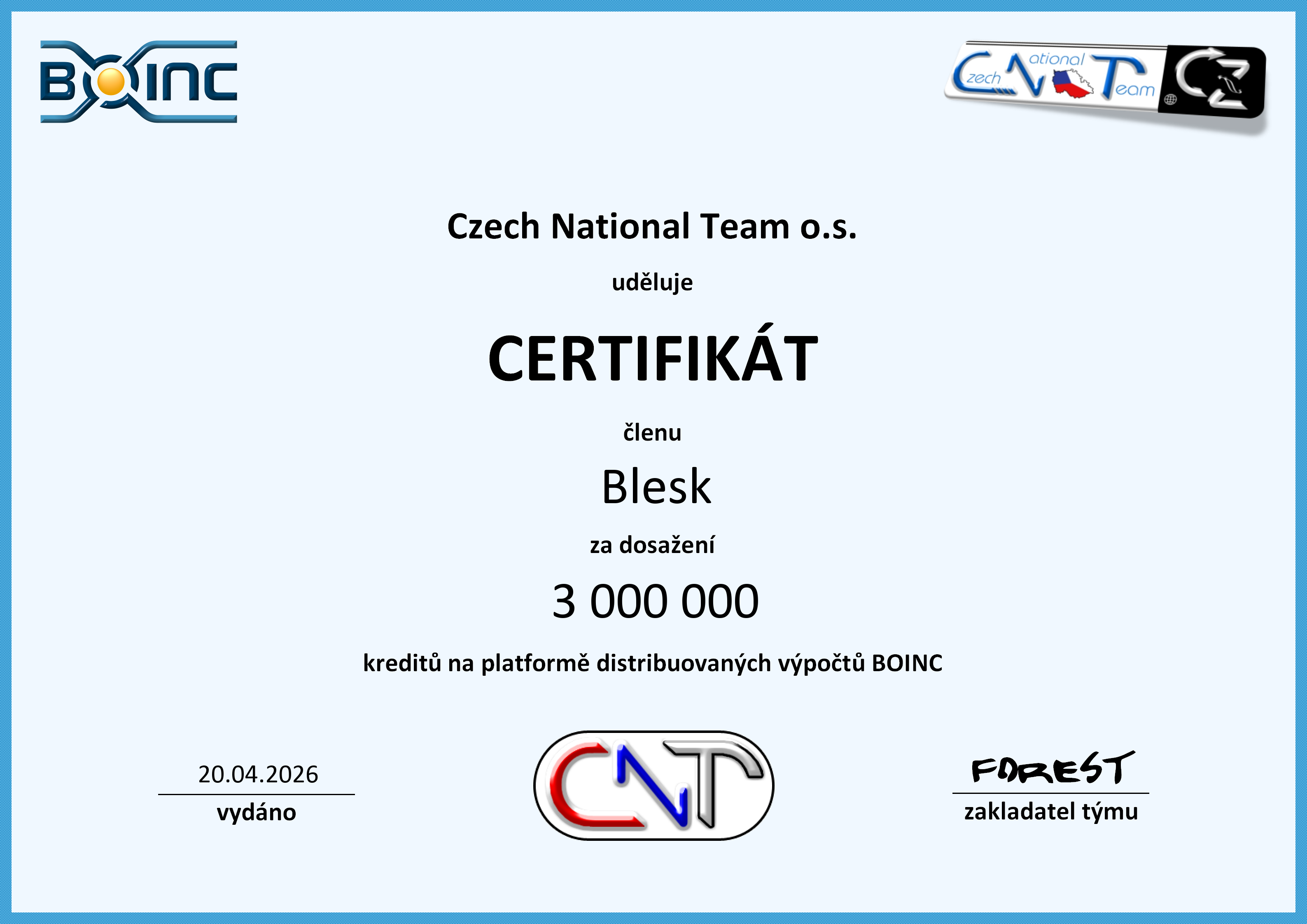 Czech National Team | Projekty CNT | Statistiky CNT | Distribuované výpočty CNT | SETI CNT | Einstein CNT | Asteroids | Fórum CNT | Chat CNT | Galerie CNT | BOINC