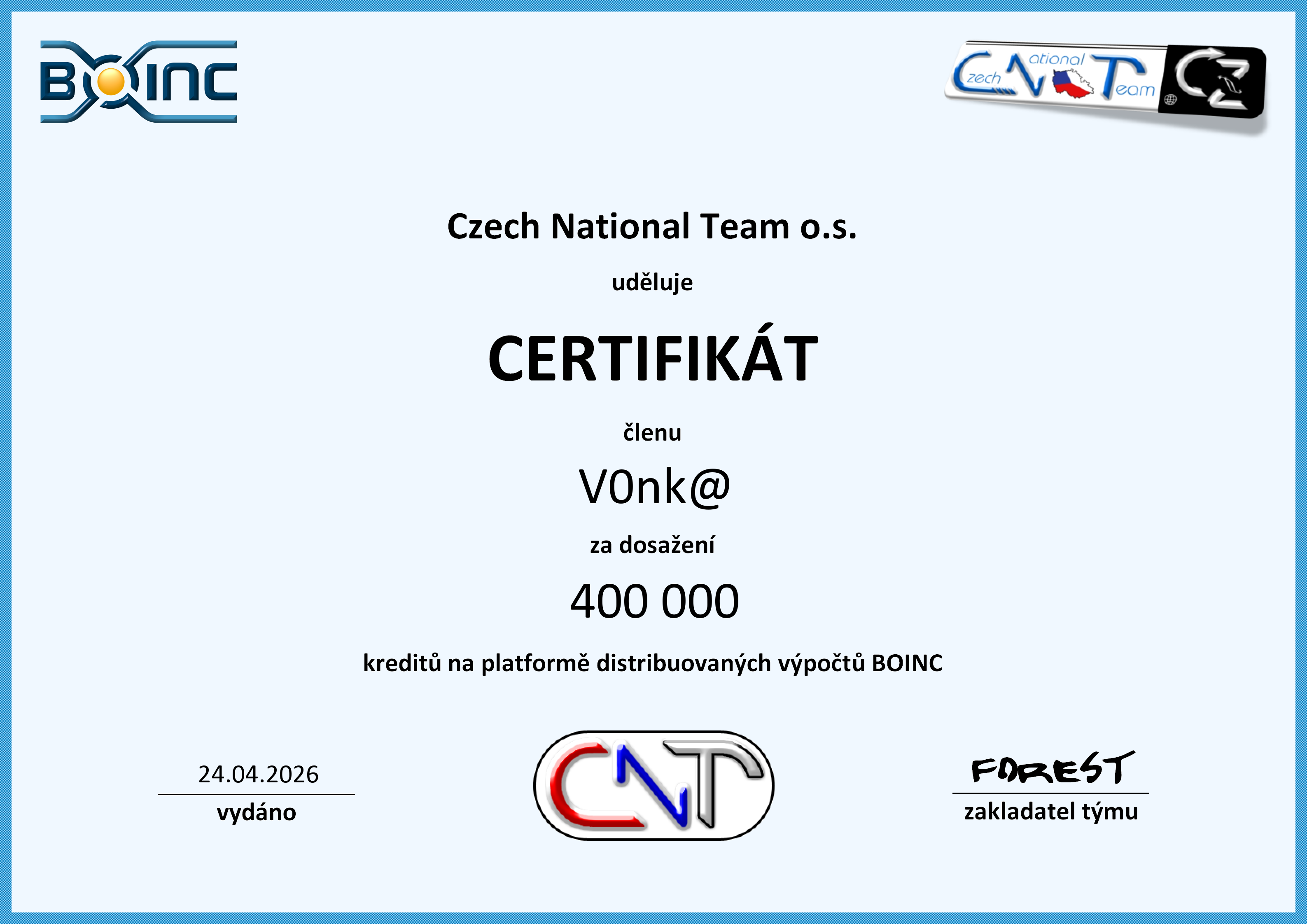 CNT BOINC CUP : 454 bodů.
