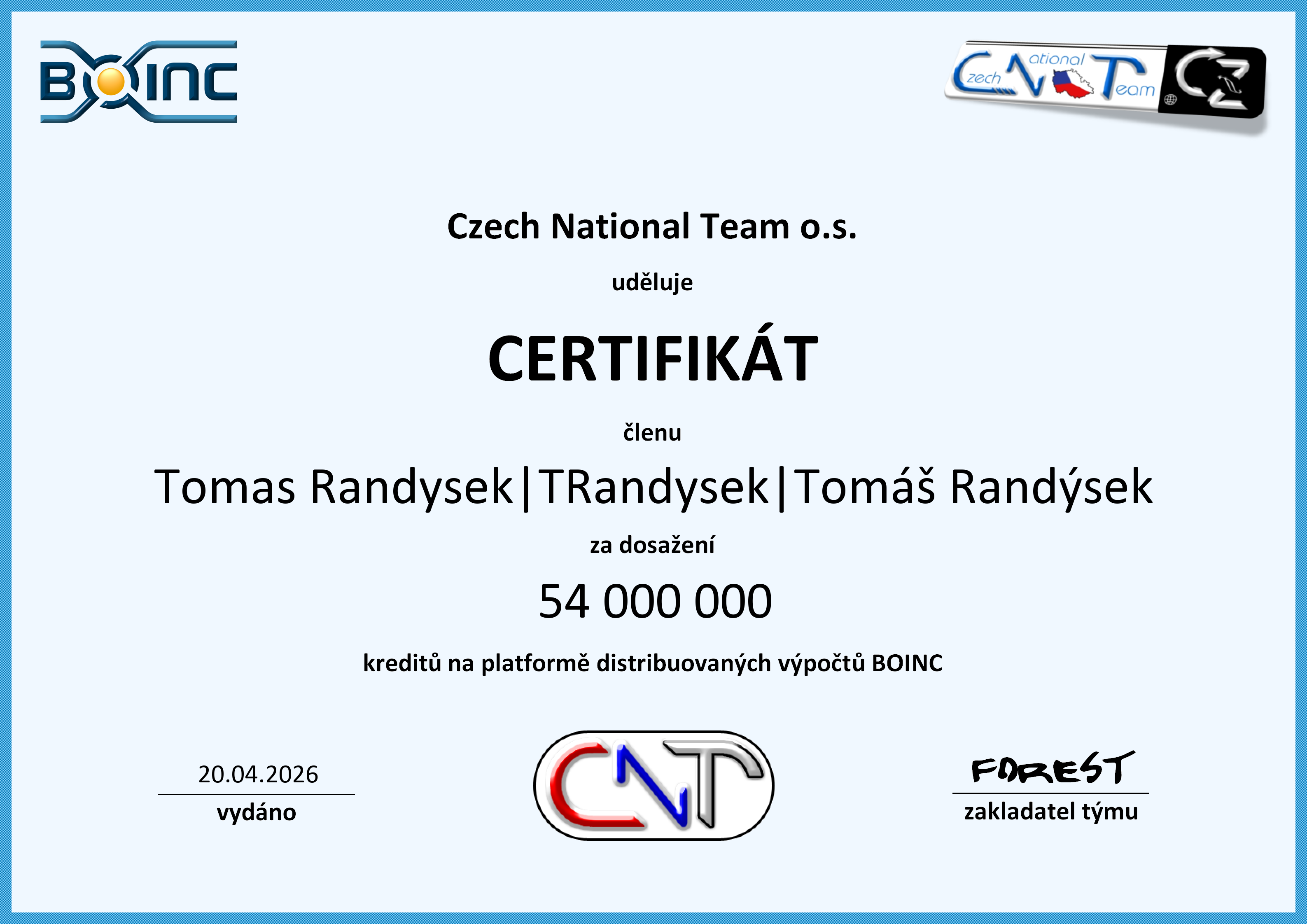 Czech National Team | Projekty CNT | Statistiky CNT | Distribuované výpočty CNT | SETI CNT | Einstein CNT | Asteroids | Fórum CNT | Chat CNT | Galerie CNT | BOINC