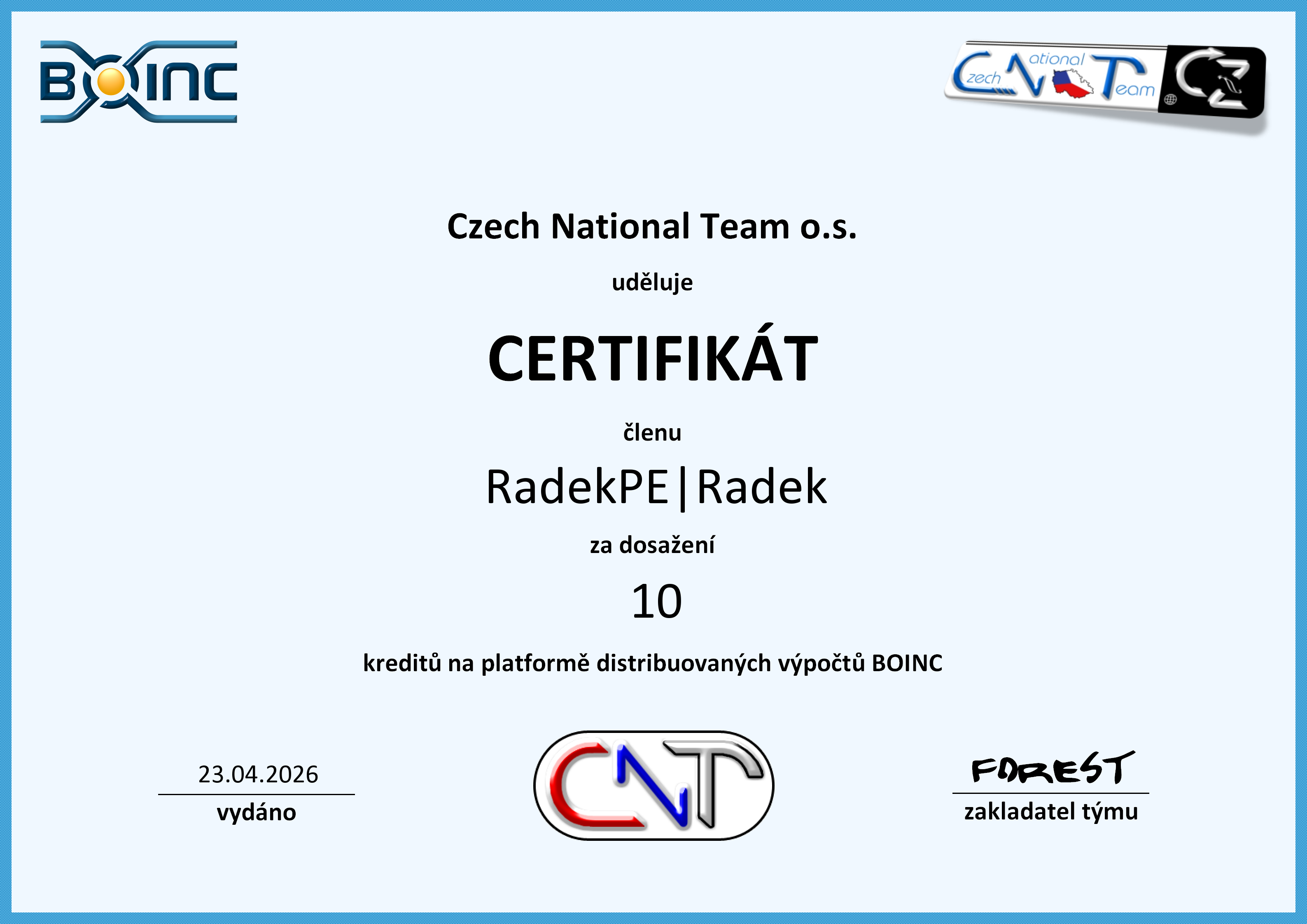 CNT BOINC CUP : 37 bodů.