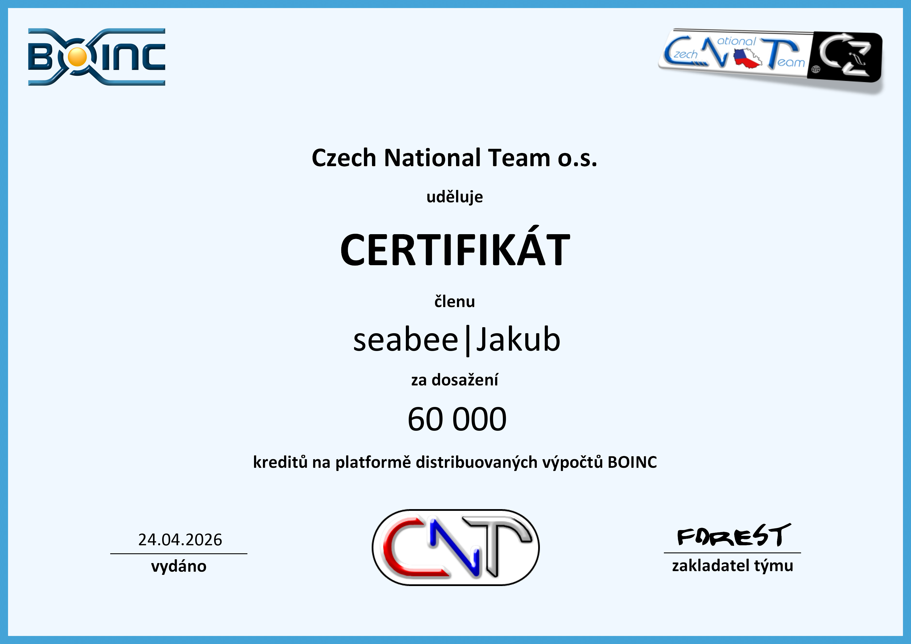 CNT BOINC ACTIVE CUP : 500 bodů.