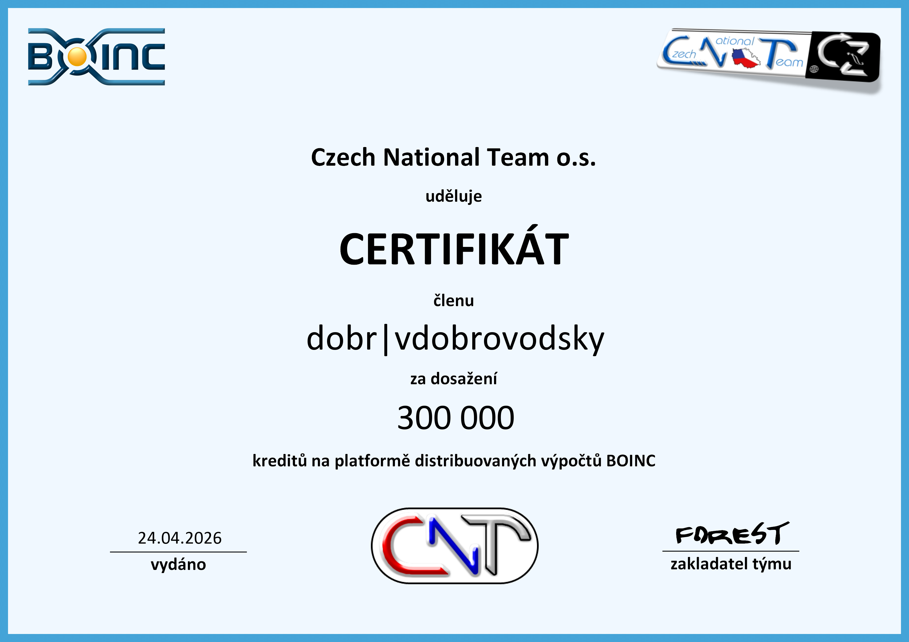 CNT BOINC ACTIVE CUP : 3603 bodů.