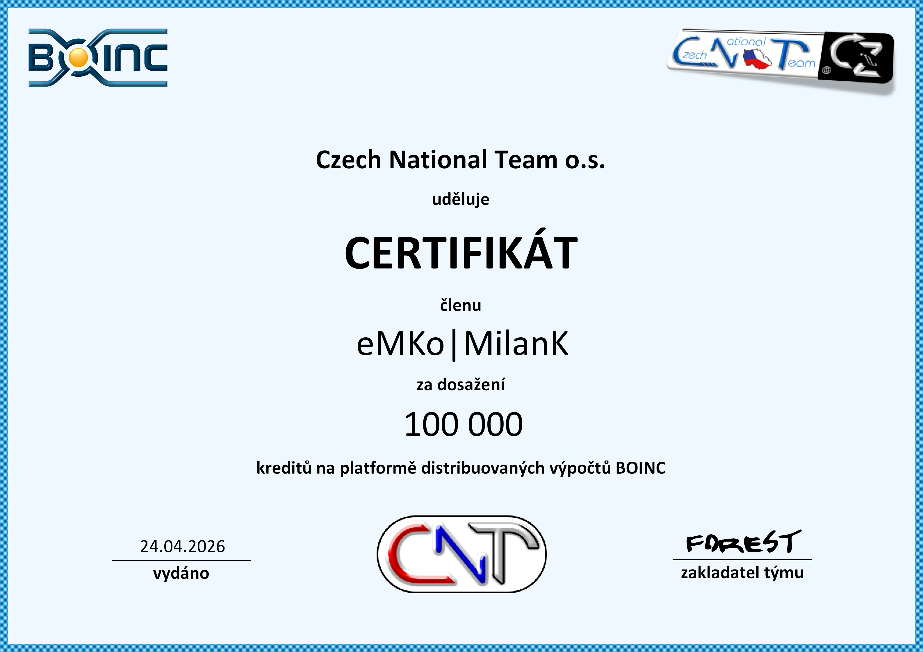 Czech National Team | Projekty CNT | Statistiky CNT | Distribuované výpočty CNT | SETI CNT | Einstein CNT | Asteroids | Fórum CNT | Chat CNT | Galerie CNT | BOINC